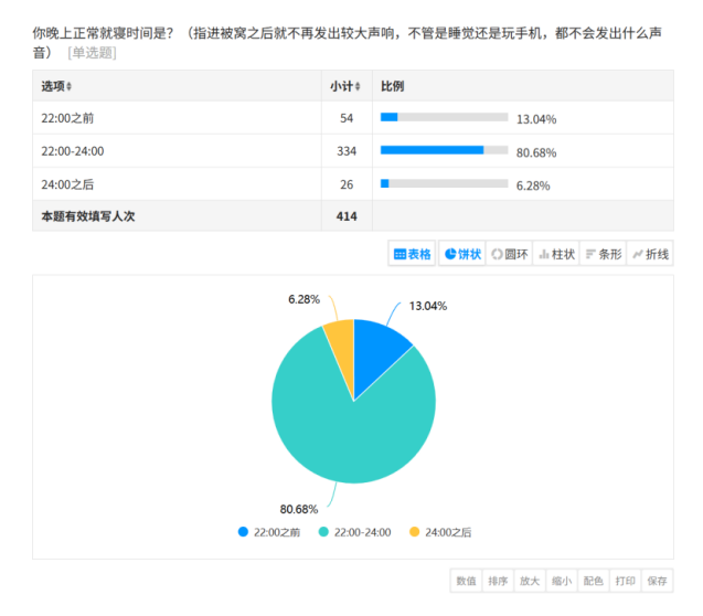 作息时间方面:约13%的新生表示习惯在晚上10点前入睡,80%的同学选择10点至12点间入睡,仅有6%的同学习惯熬夜到12点以后。这一数据为我们的“早睡型”和“夜猫子型”同学分区域住宿提供了依据。