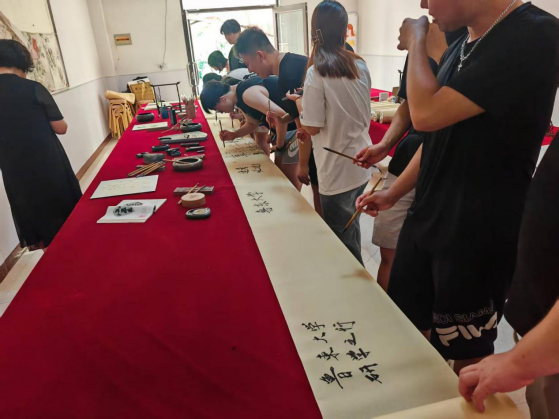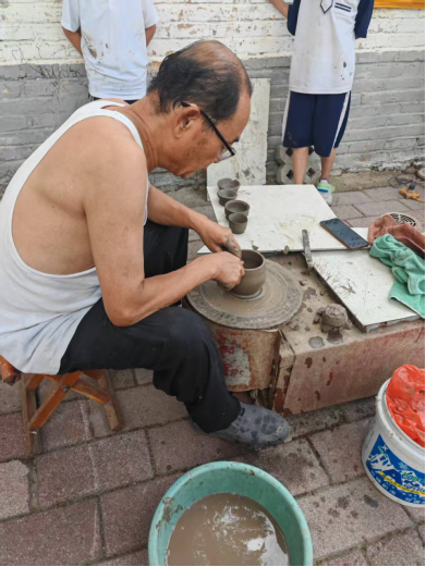 实践队先后走访了桥山砚台展览馆、黑陶非遗传承人工作室和莒县过门笺传承人于红老师的工作室。在砚台展览馆,队员们亲手研磨墨块,提笔挥毫,感受“文房四宝”的独特魅力;在黑陶工作室,队员们观摩了传承人赵老师的精湛技艺,并尝试拉坯成型,体验泥土在指尖蜕变的奇妙过程;在于红老师的指导下,队员们拿起剪刀,学习制作莒县过门笺,一张张红纸在巧手下化作精美的艺术品。这些沉浸式的体验让队员们深刻体会到非遗技艺的博大精深,更感受到传承人坚守匠心的精神力量。