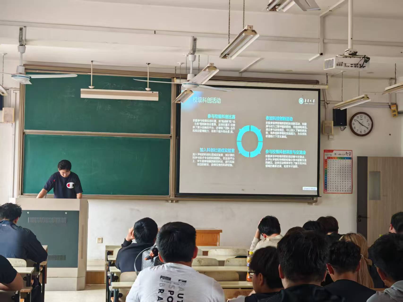 宣讲现场,创新创业辅导员以“校级科创活动全景指南”为主题,通过投影课件系统介绍了四类核心科创路径:一是参与校级科创比赛,如校园科技创新大赛活动,详解赛事选题方向、备赛逻辑及学院在船舶结构优化、海洋资源开发等领域的指导资源;二是加入科创社团或实验室,如计算机科学与技术的科创团队,同时,辅导员也介绍了相关团队的招新要求与科研项目,鼓励学生依托平台开展实践;三是参与科技创新活动,在此环节辅导员鼓励学生们积极参加学校组织的创新活动,强调此类活动对提升动手能力、积累项目经验的价值;四是参与校级科创讲座与交流会,预告后续 “学长科创经验分享会”等活动,助力学生拓宽科研视野。