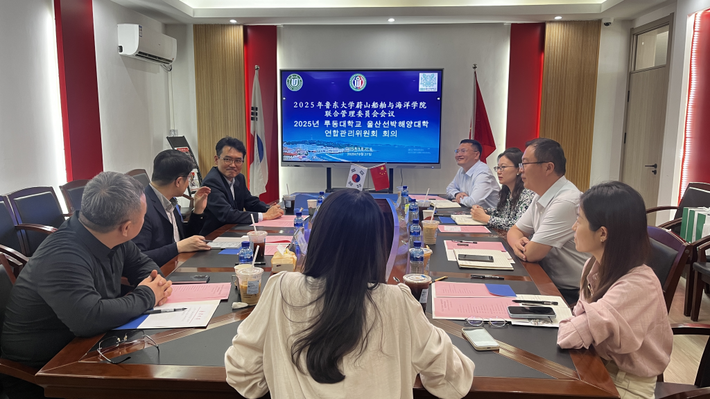 9月27日,我校与韩国蔚山大学在蔚山船舶与海洋学院313会议室召开了2025年度中外合作办学机构联合管理委员会会议,就中外合作办学相关事宜进行友好磋商与会谈。蔚山大学国际交流处亚洲事务负责人郭震博士、我校国际交流与合作处及学院负责人参加了本次会议。会议由国际交流与合作处副处长杜森主持。