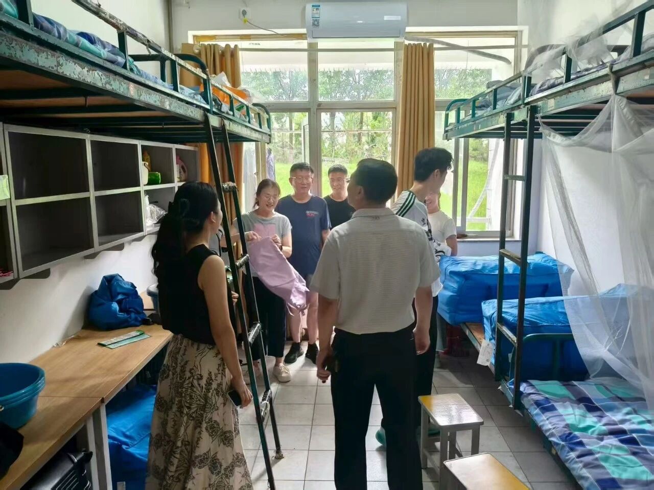 在走访过程中,学院领导和老师一行轻叩宿舍门,与新生亲切交谈,详细询问新生对宿舍环境、生活设施的适应程度,让刚踏入校园的新生感受到家人般的温暖。领导老师们还细心查看了宿舍的采光、水电供应、安全设施等情况,叮嘱新生注意用电安全,保持宿舍整洁,尽快熟悉室友,融入集体生活。