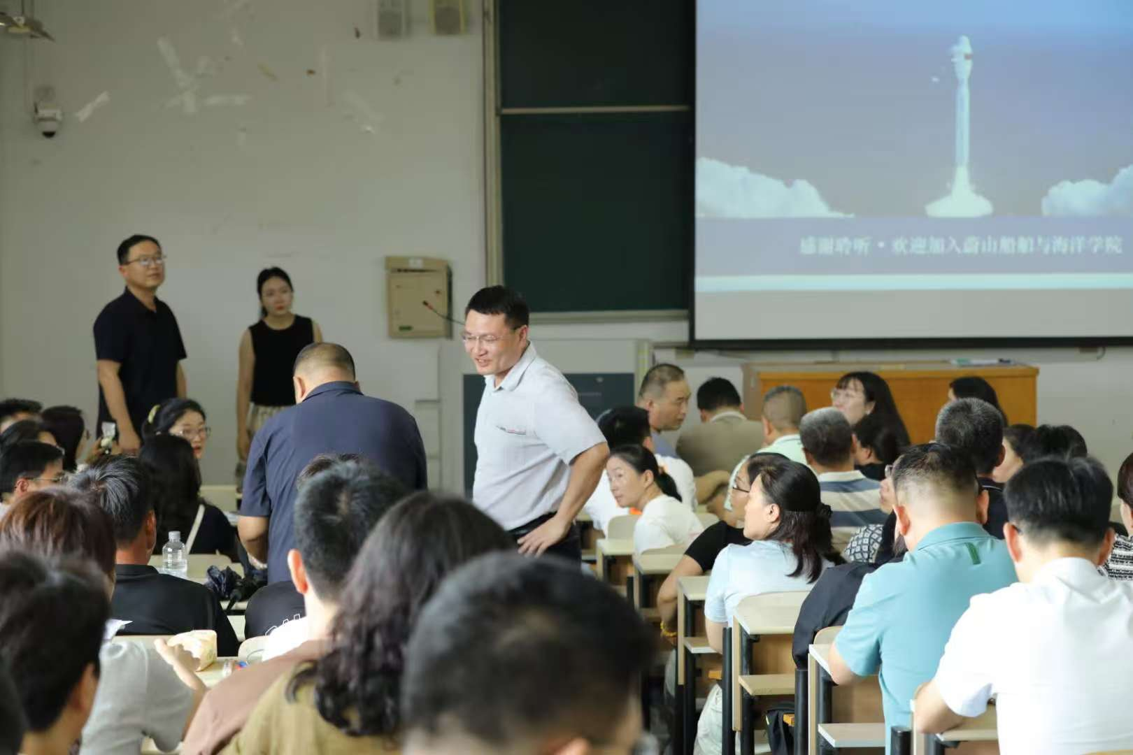 田其珍首先代表学院向全体新生及家长致以热烈的欢迎,随后张淑宁以“红色铸魂 蓝色筑梦 中外融通 产教融汇,培养新时代蓝色卓越工程师”为题,详细介绍了学院的历史沿革、办学理念、培养体系、学科优势、师资力量与人才培养成果,重点解读了学院在合作办学、课程设置、科研平台、就业指导等方面的特色举措,让家长们清晰了解孩子未来四年的成长路径与发展方向。