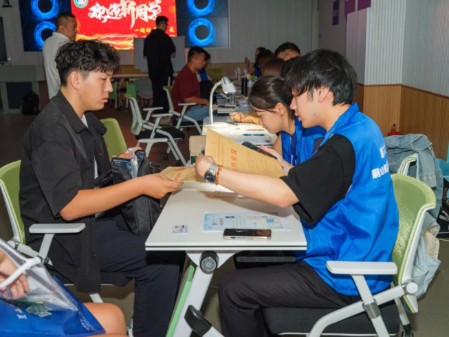 学院内部设立了专业报到接待点,志愿者们以热情积极的态度,耐心细致地协助新生完成报到手续。