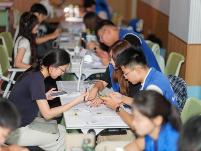 蔚山船舶与海洋学院安排志愿者一对一协助新生办理入学手续。志愿者们早早到岗,以饱满的精神状态投入工作,耐心解答新生疑问,细心核对入学材料,确保各项信息的准确性。